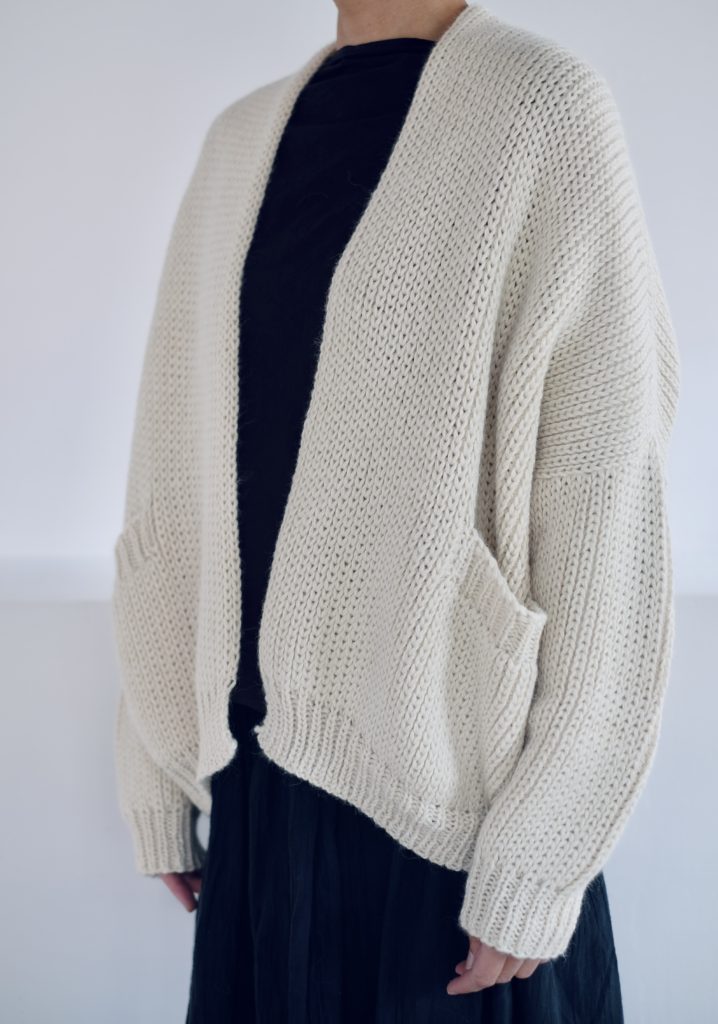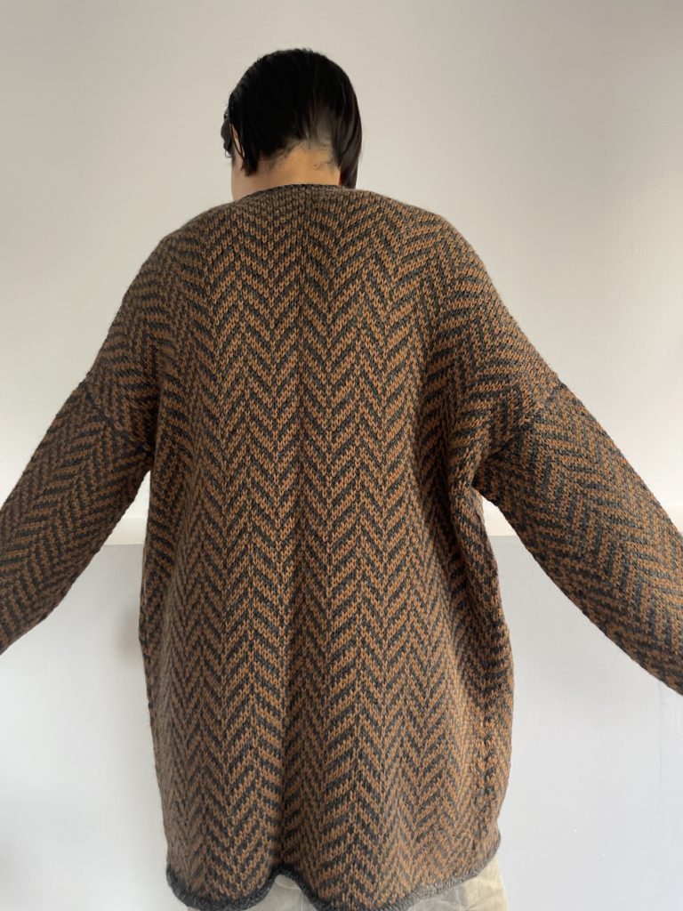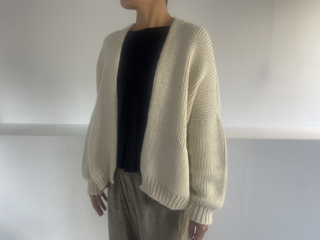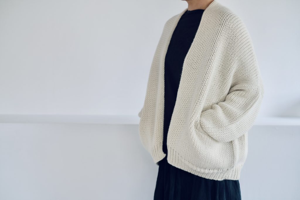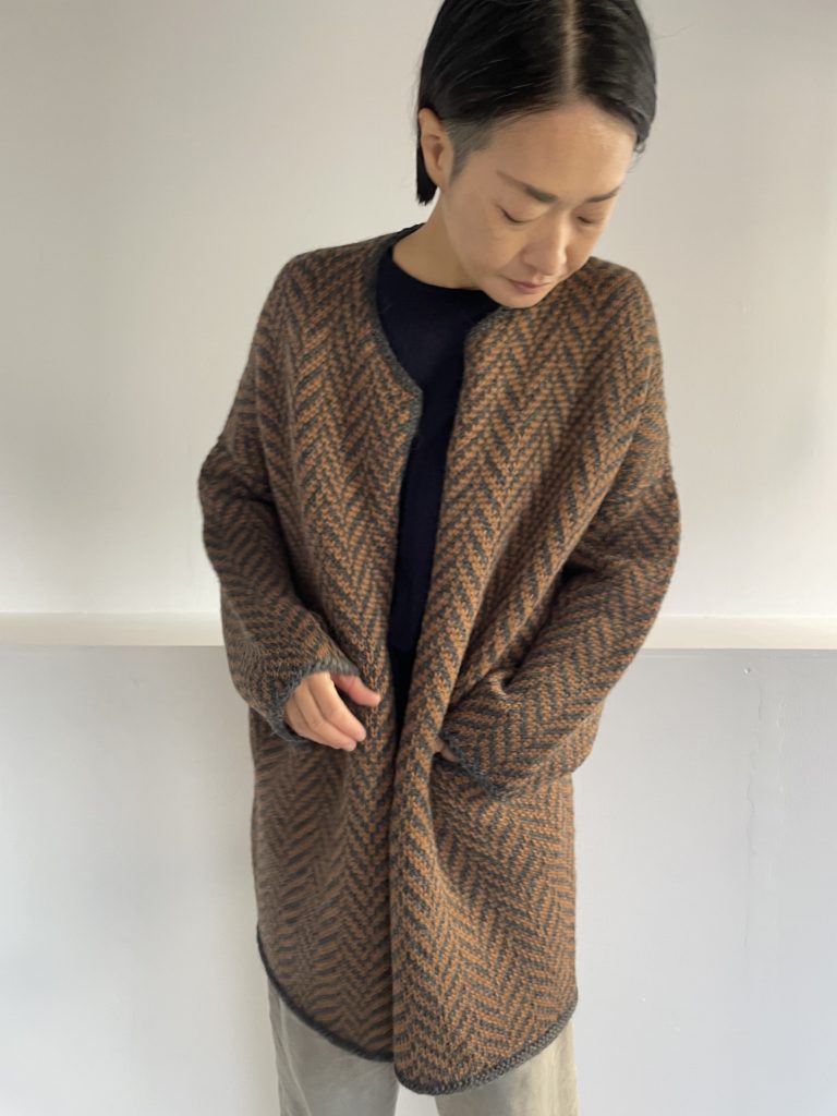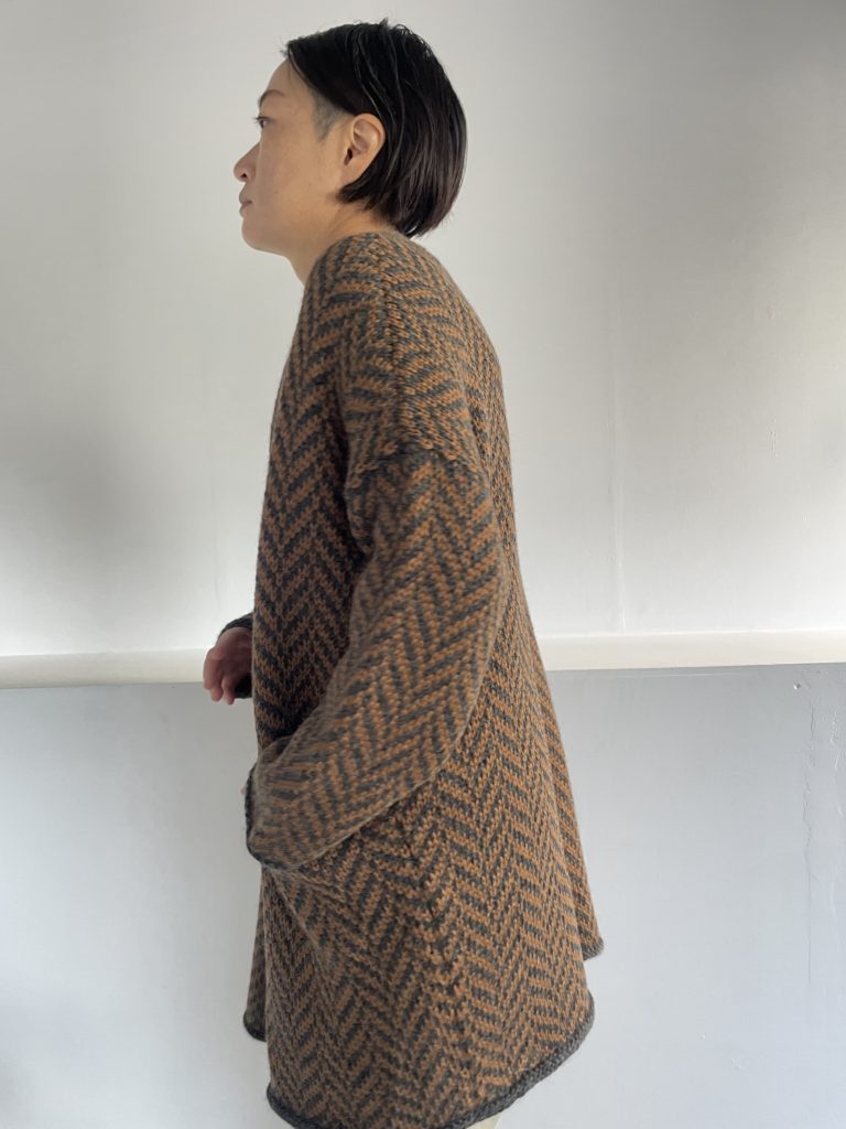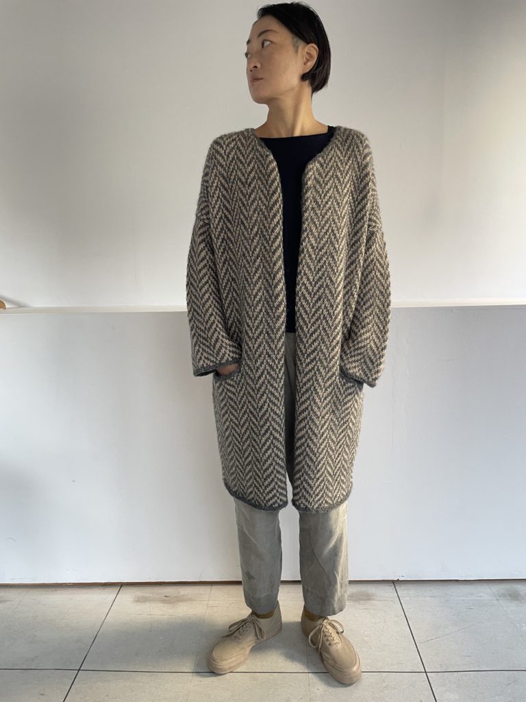 ヨーロッパの上質な糸を使い、ラトビアの編み職人 マリッタさんが手編み機を使って一点一点丁寧に編み上げるニットコートです。肩や両脇、袖口などの縫製はすべて手作業で行い、袖を通したときにきもちよく、美しいラインが保たれるように作られています。着てみるとふわっと軽く、真冬に日向ぼっこをしているかのようなやわらかな暖かさに包まれる感覚。今回はすべて一点ずつ違った形・色の入荷です 。