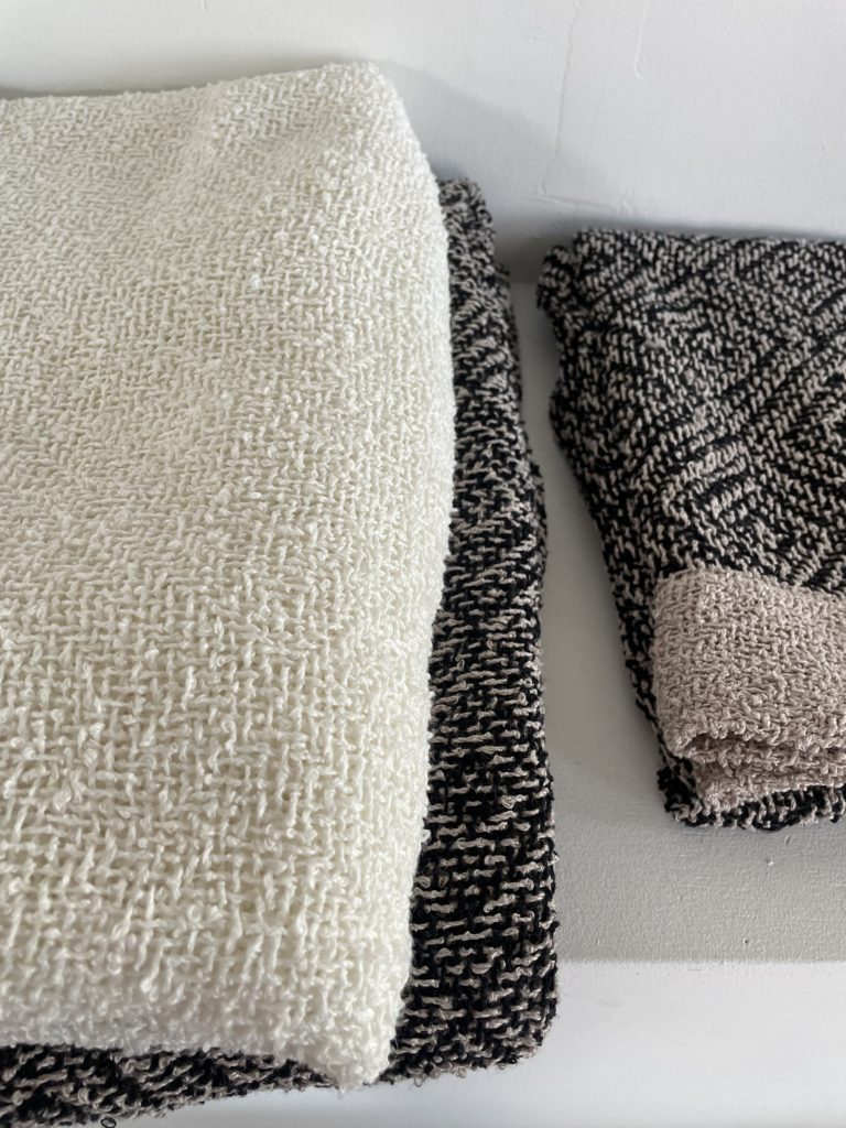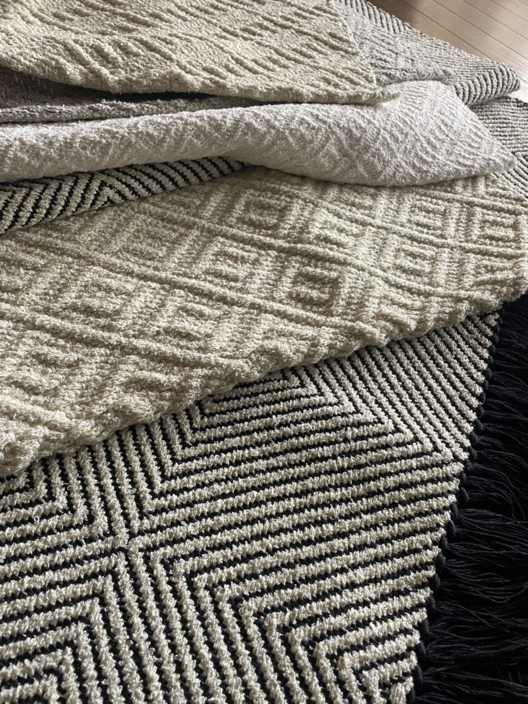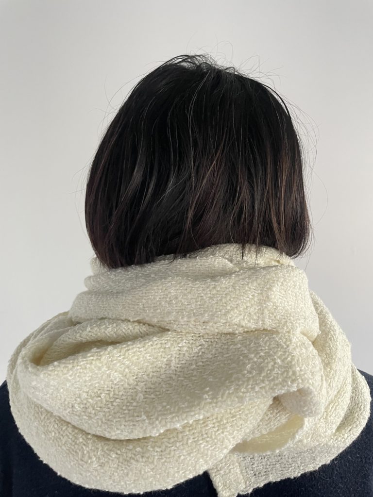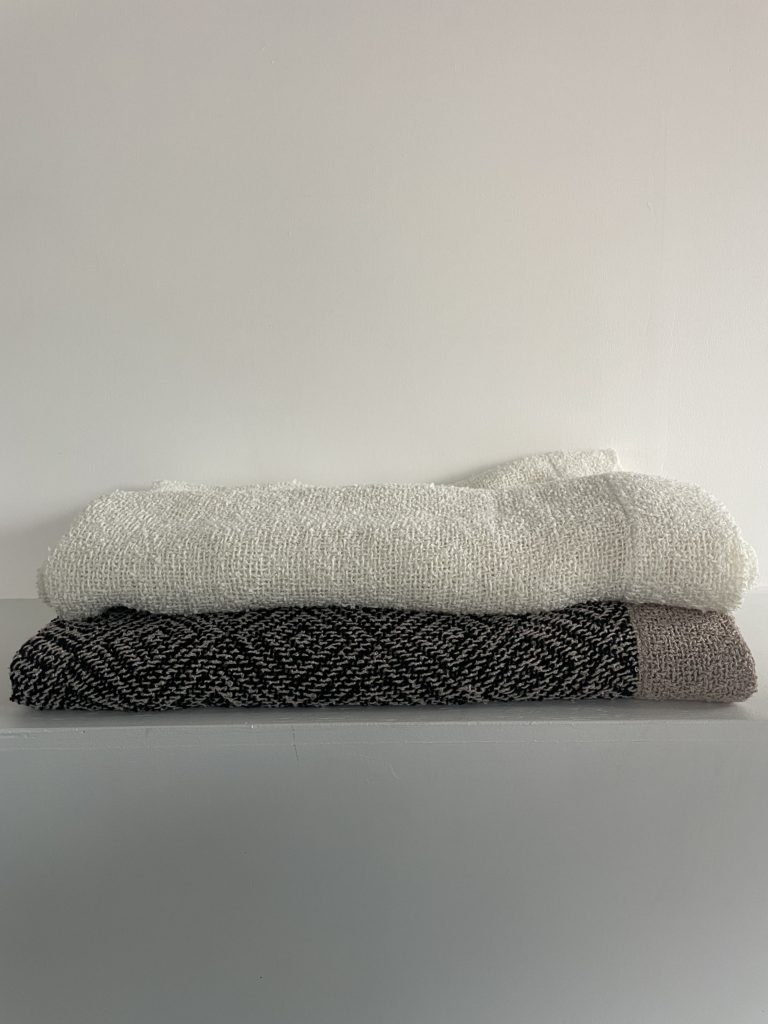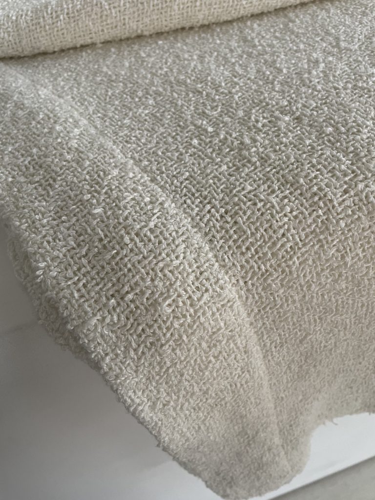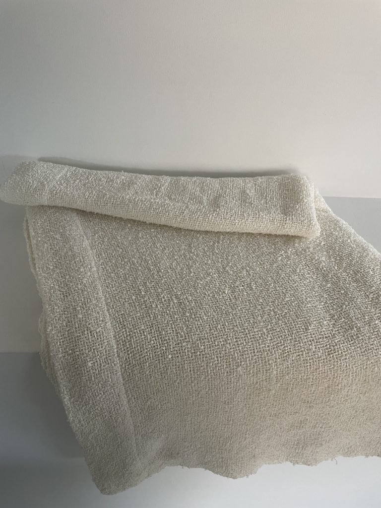 ショールと同じくらい甘く織ったリネン100%のブランケットは、ベッドの上で身体の隅々に布が落ちていくような感覚、まるで蚕になったかのような心地です。ヨーロッパで栽培されるフラックスという原料から作られるリネンは、同じ麻でも苧麻(ラミー)や大麻(ヘンプ)とは種が違い、夏は涼しくも冬は暖かいという特性を持っています。上質なリネンは10年後が一番いい状態になると言われ、特に手織りのリネン製品は使い込んでいくとどんどん柔らかくなるのが目に見えてわかります。ウール製品などと比べるとこの時期一見ひんやり感じられるかもしれませんが、化繊に刺激を感じる方、ウールでは暑すぎるという方には使い込んだリネンがお勧め。リネンの繊維は細く、使い始めは肌やシーツなどにも付着する場合がありますが、何度も洗いを重ねることでそれも徐々に落ち着きます。お洗濯はネットに入れて手洗いコースで。始めはリネンの繊維がふわふわと大量に出てくる可能性がありますが、細かい目のネットであれば繊維は他のものに付着せず、逆に目の大きなネットに入れて洗えば他の洗濯物の糸くずとともに集め捨てることもできます。使って育てて10年20年と同じリネンと暮らす生活は、きっと使い捨ての製品とは違った感覚を呼び覚まし、道具を使う悦びに包まれることでしょう。
