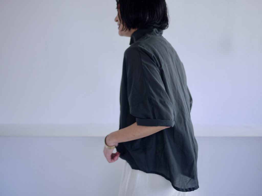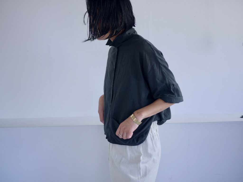 夏に一枚でシャツにも重ねてジャケットのようにも着回せるジャケットシャツ。素材は柔らかなコットンシルクを使用。この素材は毎年ssシーズンには欠かせない素材となっています。色は3色。ブラックとホワイトとチャコールグレー。