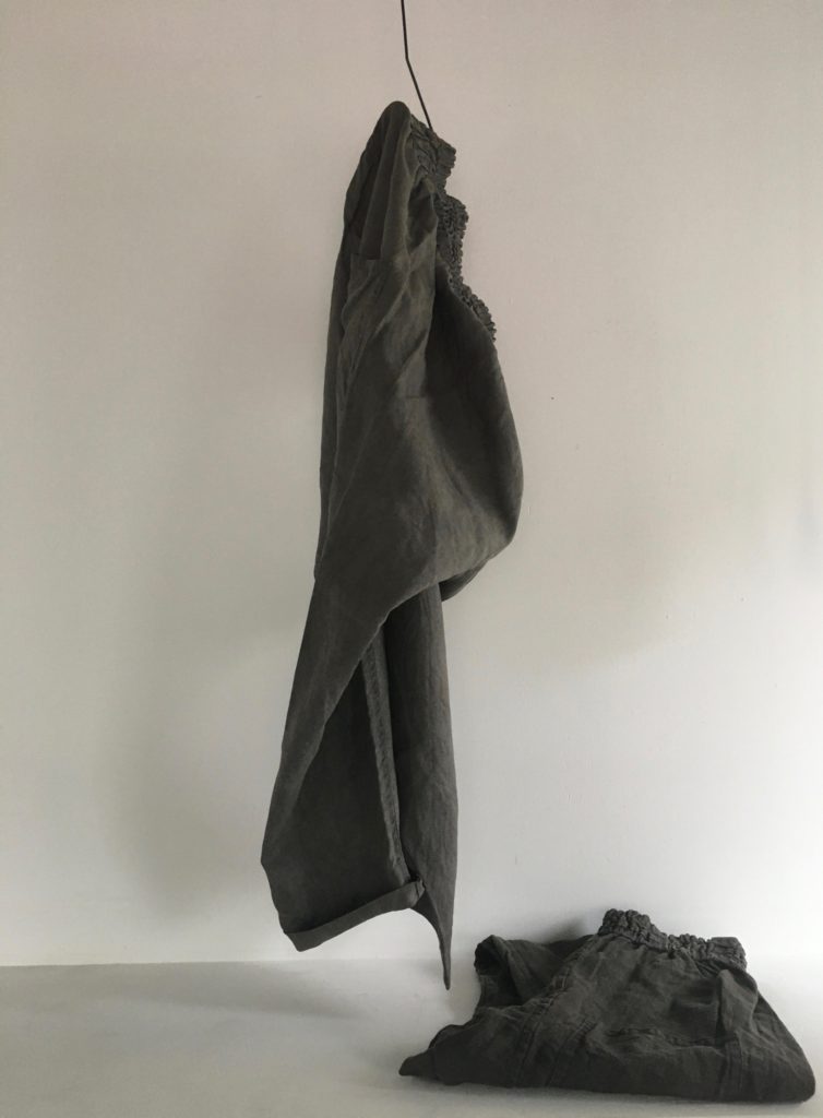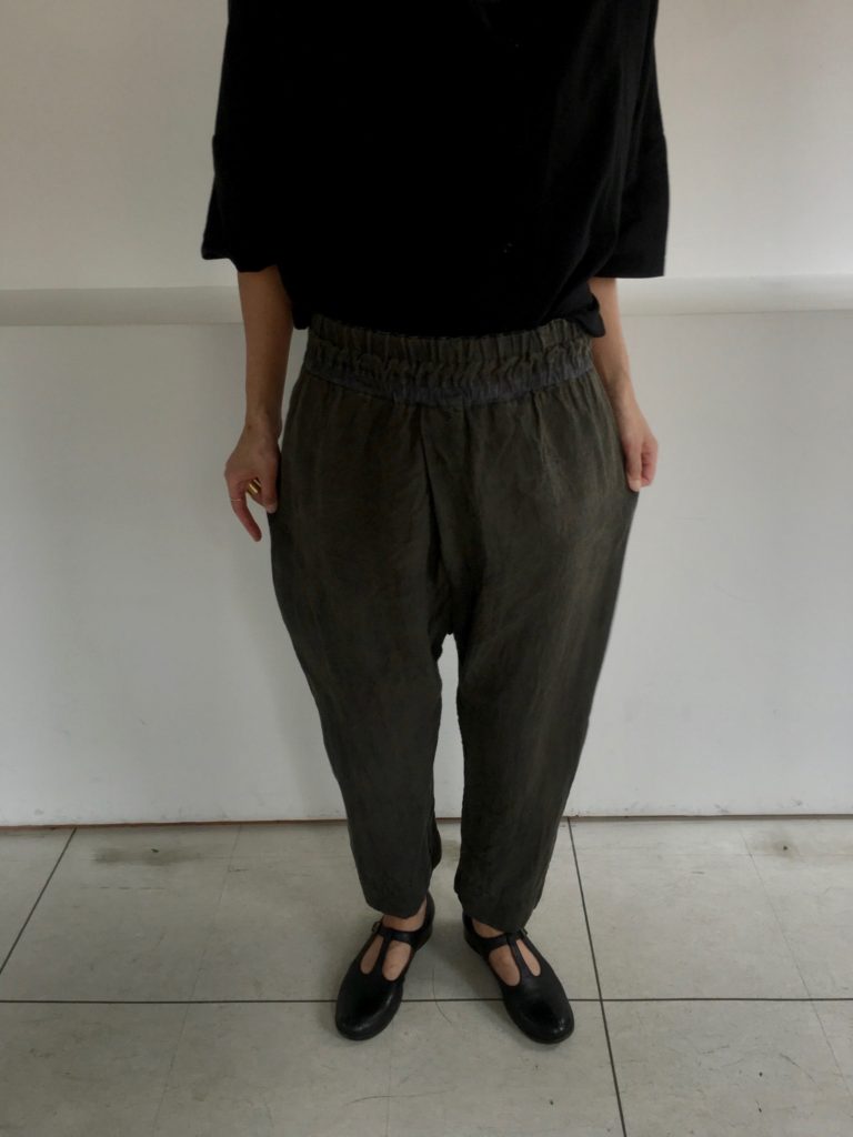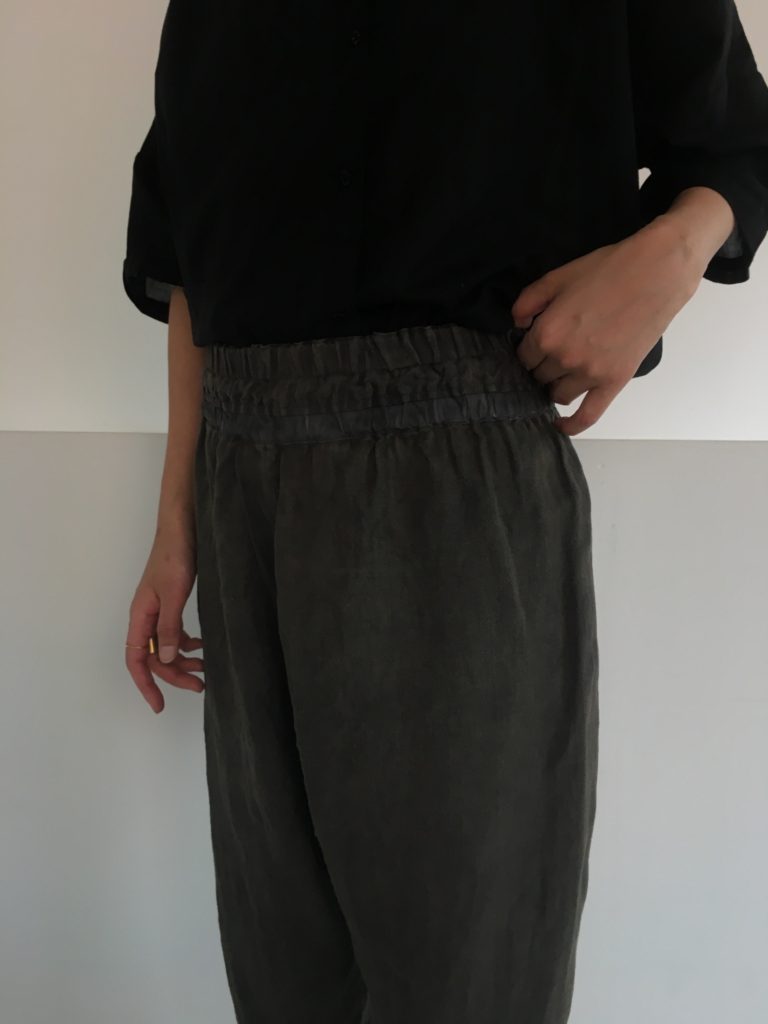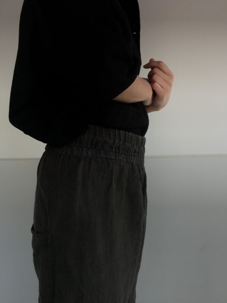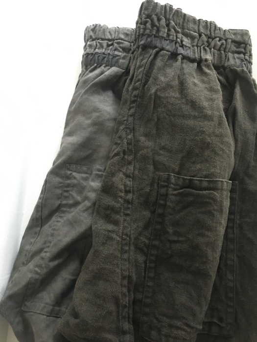 墨染を施し更にミロバランという実を砕いて煮出す植物染めをさらにかけてあります深い混ざり合ったとても雰囲気のあるグレー
