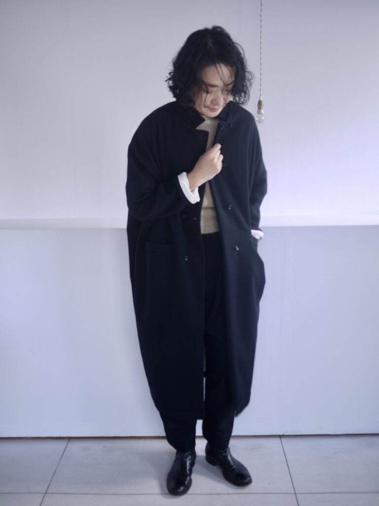 Long w jacket coat〈 Black 〉